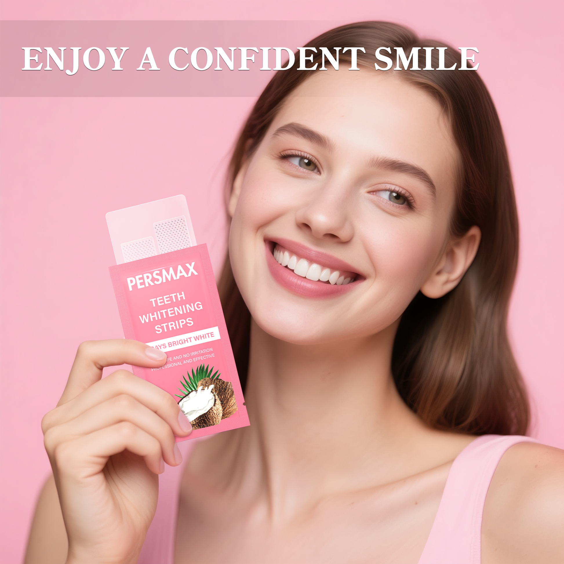 [PROFFESSOINAL TEETN WHITENING STRIPS] PERSMAX Coconut Oil Teeth Whitening Strips use professional whitening ingredients, which can
