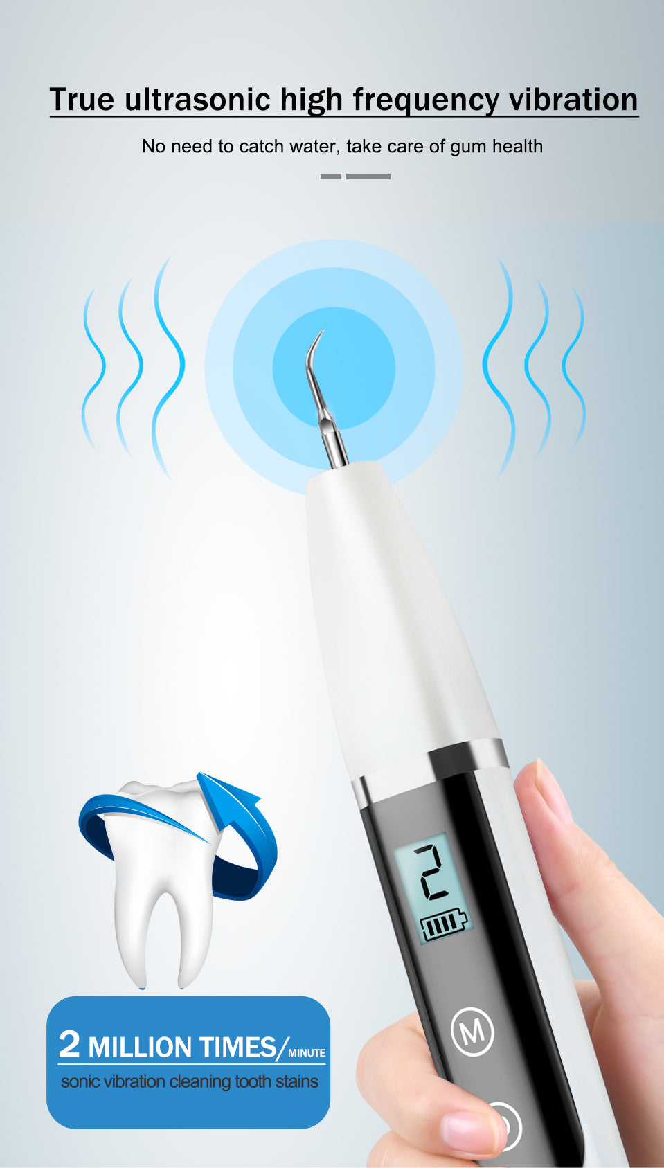 - 【Real Ultrasonic Dental Calculus Remover】: Using real ultrasonic high-frequency vibration technology, the vibration frequency can reach 2,000,000 times/min. Ultrasonic Tooth Cleaner starts to vibrate when it touches the teeth and stops automatically when it touches the gums to avoid damaging your gums. It reduces the damage to enamel and gums caused by manual dental tools. Effortlessly and quickly removes teeth stains from even the hardest-to-reach areas to maintain your teeth and gums clean.