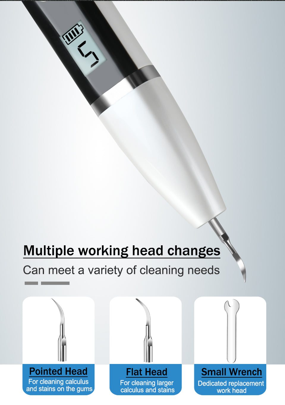 - 【Professional Dental Calculus Remover For Your Choice】: Our Ultrasonic dental calculus remover includes 1*Rechargeable plaque Remover for teeth, 1*Replaceable Cleaning Head, 1*Dental Picks Mirror, 1*USB Charger, 1*high-strength stickable stand, User Manual, Enjoy professional teeth cleaning at home whenever you want. Contact us if you have any questions about our teeth cleaning kit and get a solution.